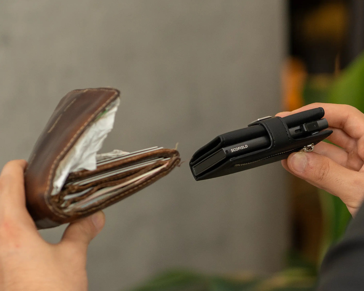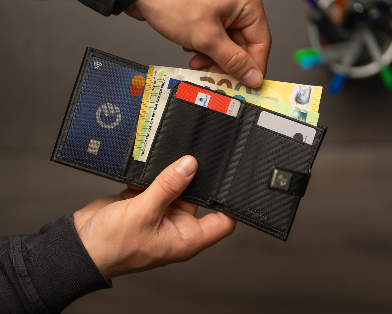 Bis zu 12 Karten, 10-15 Geldscheine, 5-10 Münzen und sogar dein Ausweis oder Führerschein finden bequem ihren Platz. Maximaler Stauraum, minimale Größe. Alles dabei, ohne Kompromisse.